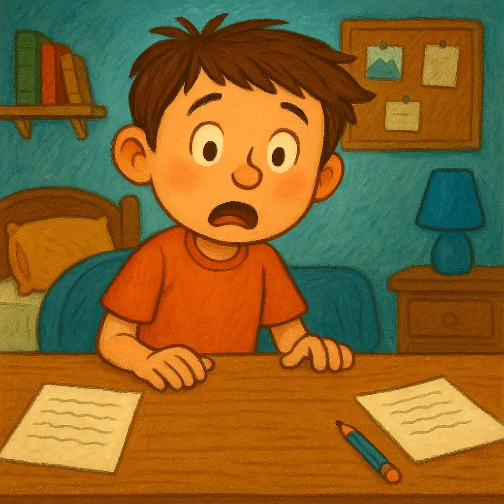At home, he double-checked. His math sheets were neatly stacked on his desk. But by morning, they were gone!