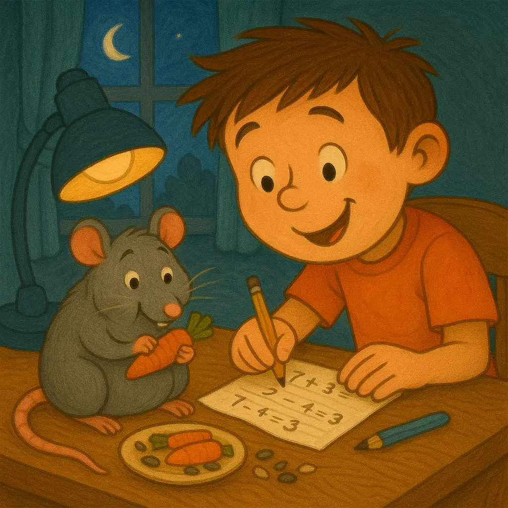 And so, the mystery of the vanishing homework was solved—not with scolding, but with snacks, giggles, and a rat who loved to learn (and nibble) along the way.