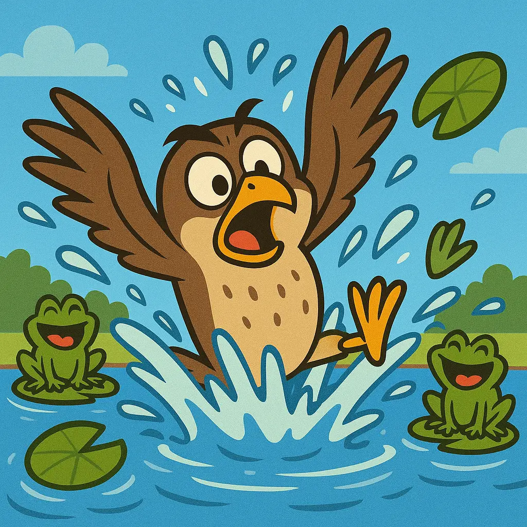 The frogs croaked, “Not us! But thanks for the splashdown!”