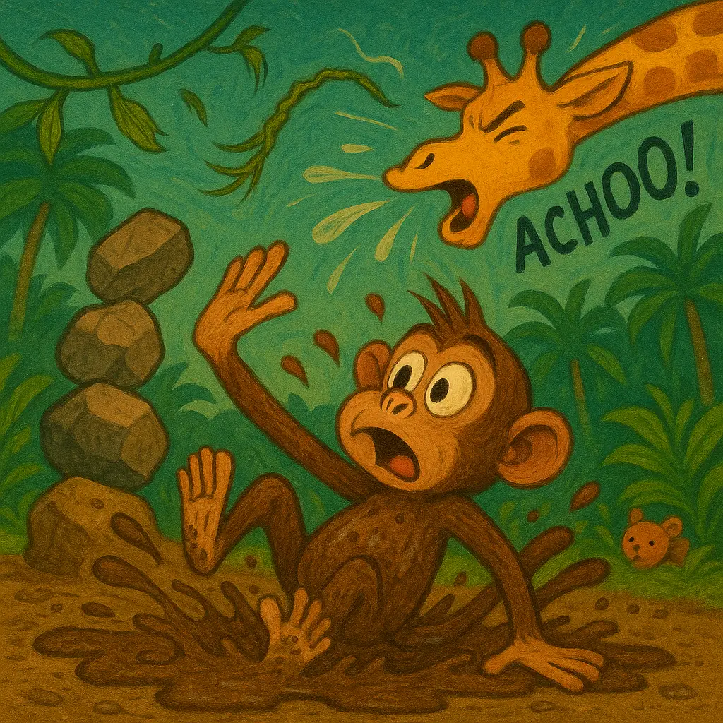 Daisy quacked so hard she almost toppled over. Then she flapped high and dove in, KERSPLASH! Mud rained down like chocolate milk.