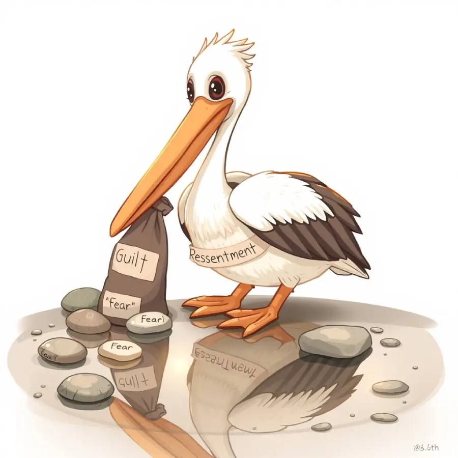 Hi, I’m Percy the Pelican. I’ve got a beak that can hold a small grocery store and a tendency to overpack, emotionally and otherwise. They say pelicans glide gracefully, but let me tell you that grace takes work… especially when your metaphorical baggage is heavier than your wingspan.